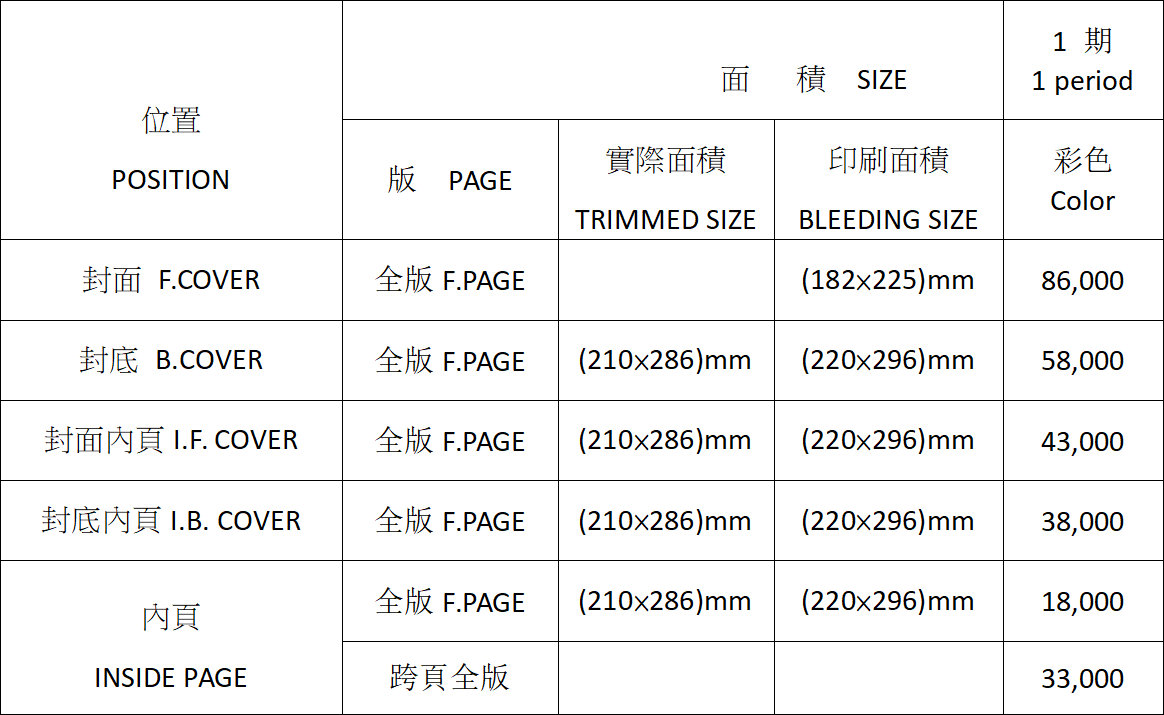 《華人》雜誌廣告價(jià)目表